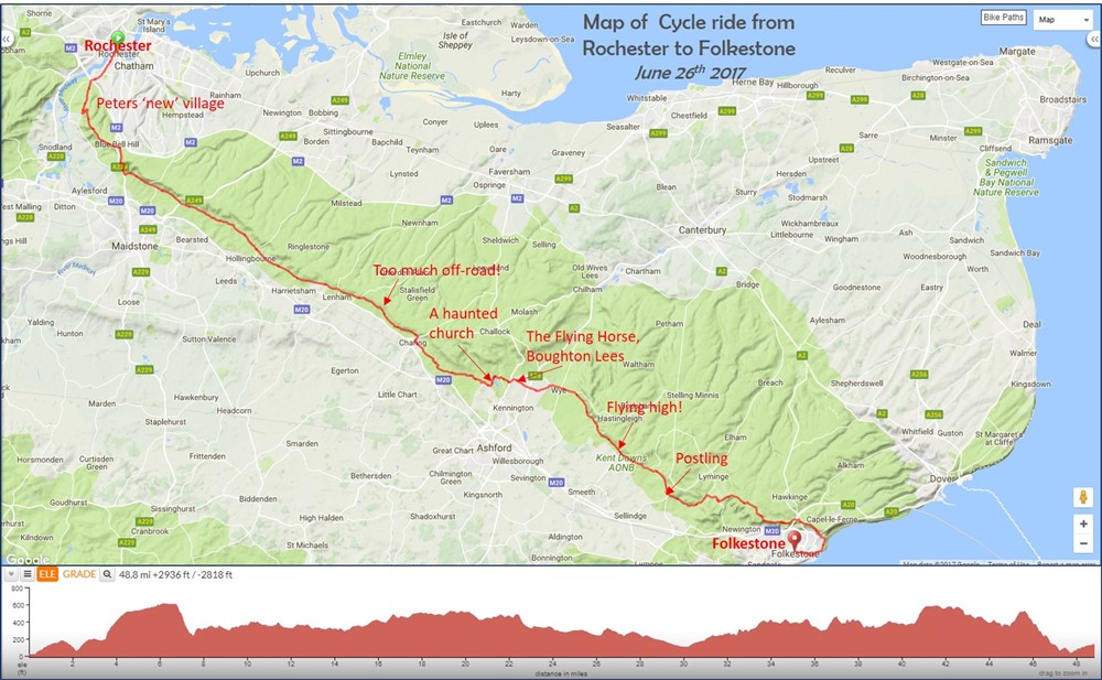 I’m not entirely sure what happened next, except to say that I found myself continuing on ‘the purple line’ along a beautiful section of the Pilgrims Way with Lou, who vowed she wouldn’t leave me in a ditch somewhere gasping for air, and I vowed that my Garmin and I would get her to Whitstable. We had no idea whether the group was in front, behind or piling along the A2, but regardless of which group you where in, the last big challenge of the day had to be faced. We had to get back over the North Downs, which meant going up the chalk escarpment at Hollingbourne. In the heat of one of the hottest days of the year and with legs sadly depleted, I think I can speak for most when I say I was accessing the dregs of my resources.