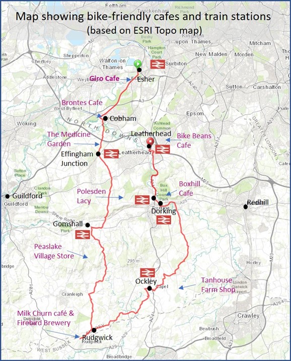 I had planned to get the 9.07 train from Vauxhall to Cobham, but as usual SouthWest trains were completely up the spout, so I spent 10 mins working out an alternative plan. I decided to get the train to Esher and ride the ‘Portsmouth Rollers’ in the hope that my cycling legs were more reliable than SouthWest trains.
